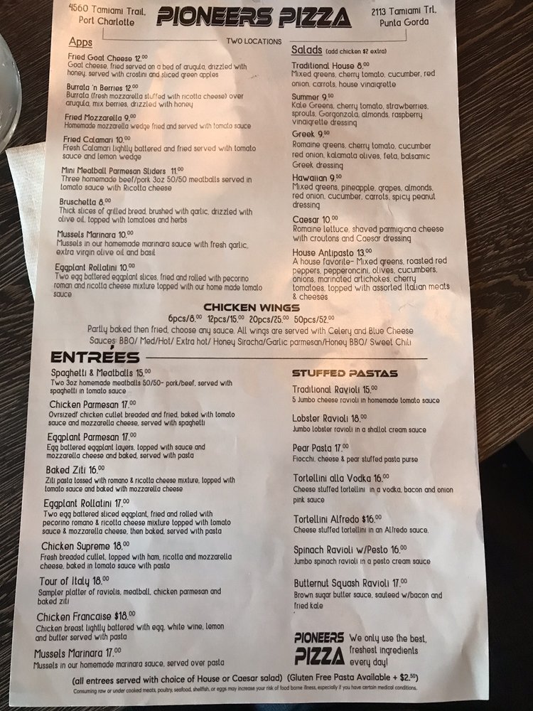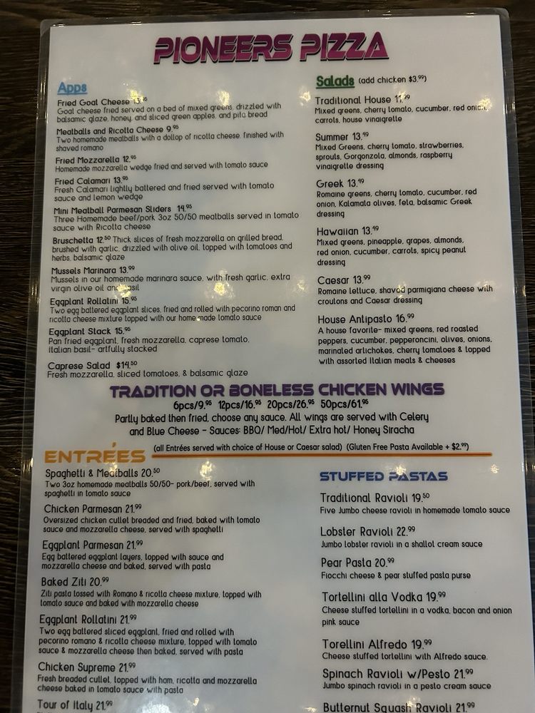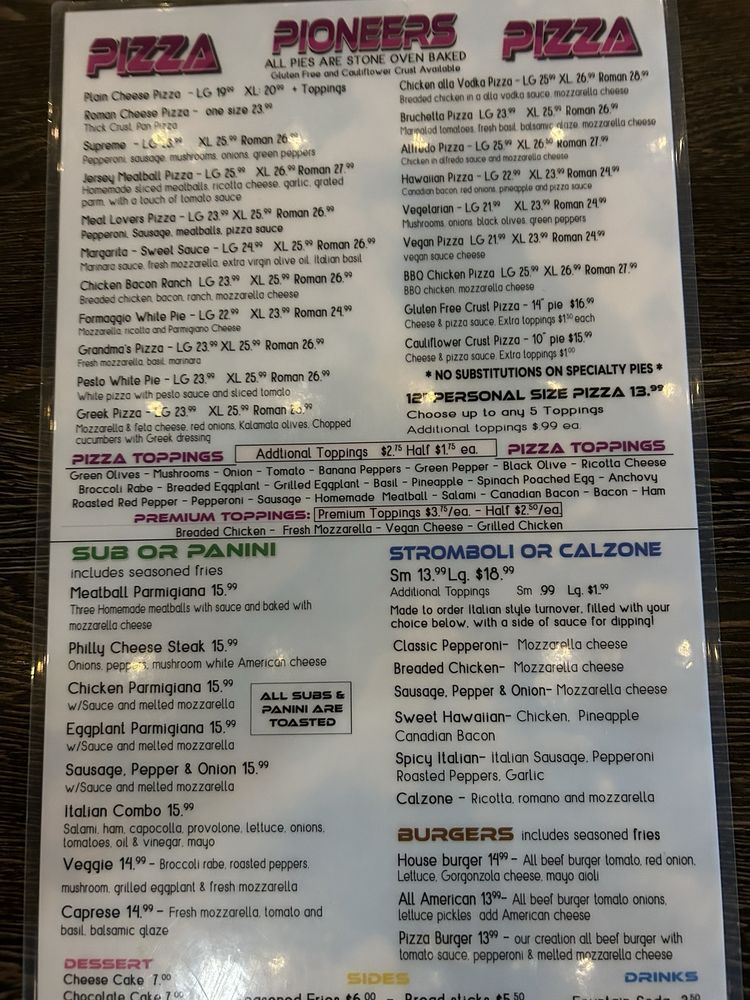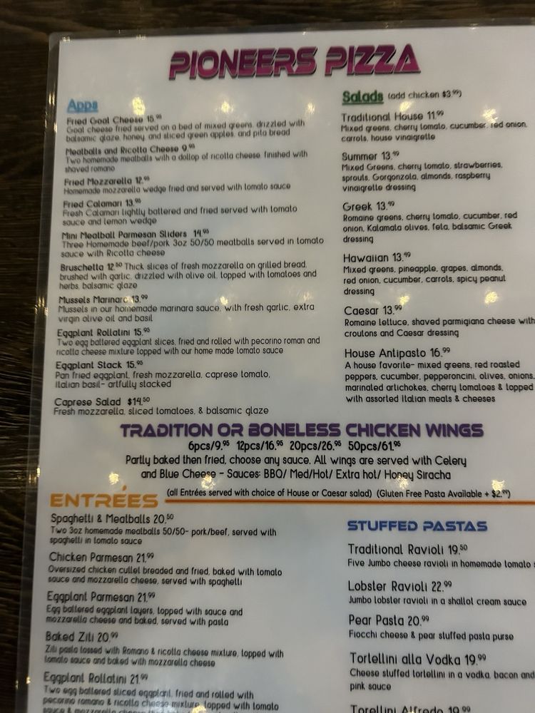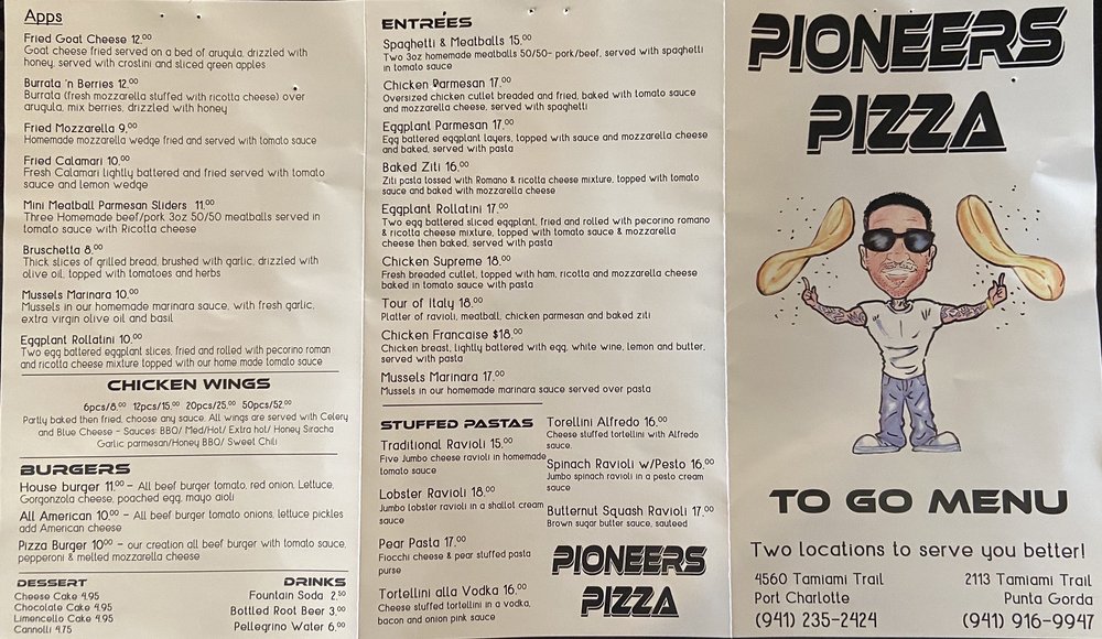 Pioneers Pizza Menu